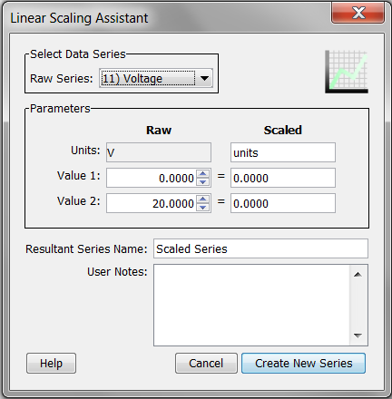 在繪圖設置:讀出一個記錄器或打開一個支持線性縮放的文件。選擇Linear Scaling Assistant,然后單擊Process按鈕。