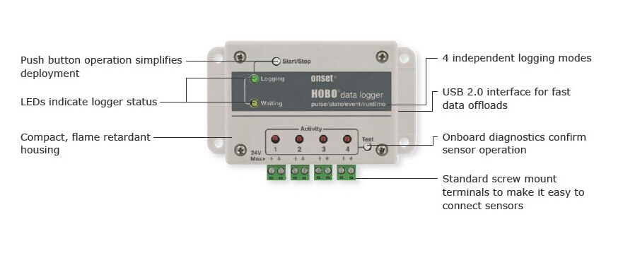 HOBO UX120-017M便攜式四通道脈沖數(shù)據(jù)記錄儀室內(nèi)數(shù)據(jù)采集器
