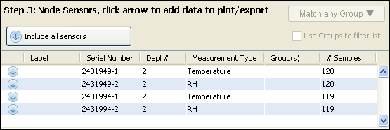 選擇要包含在文件中的傳感器,或單擊包括所有傳感器按鈕。