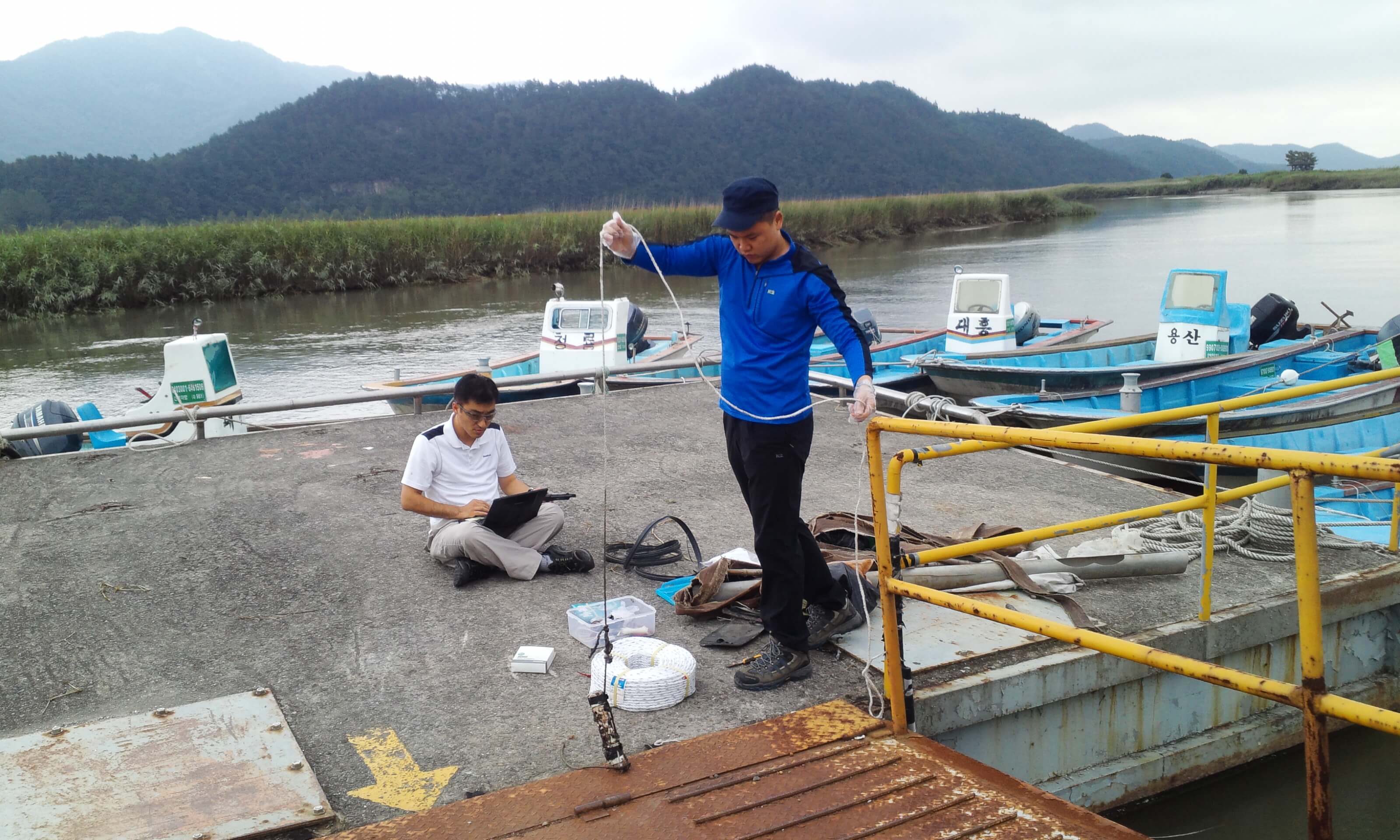 韓國(guó)水利管理機(jī)構(gòu)利用數(shù)據(jù)記錄器調(diào)查水電壩排放的沿海水體影響。