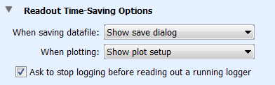 在讀出運(yùn)行的記錄器之前要求停止記錄。當(dāng)選中此復(fù)選框時(shí),每次讀出仍在記錄數(shù)據(jù)的記錄器時(shí),都會(huì)顯示一條消息。該消息詢問您是要停止記錄器還是讓它在讀取過程中繼續(xù)記錄數(shù)據(jù)。如果取消選擇此復(fù)選框,仍在記錄數(shù)據(jù)的記錄器將在讀出期間自動(dòng)繼續(xù)記錄。