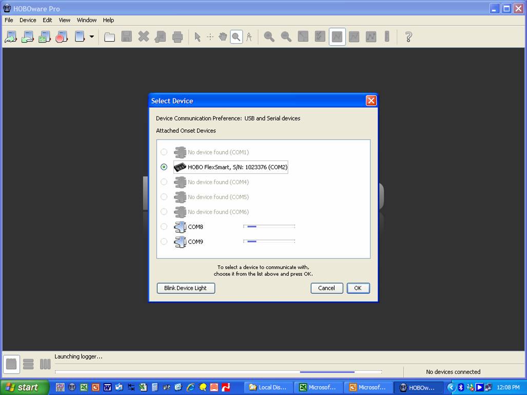 Step 1: 打開 Hobo軟件. 通過 USB - Serial cable將 Data Logger 與 PC 連接,