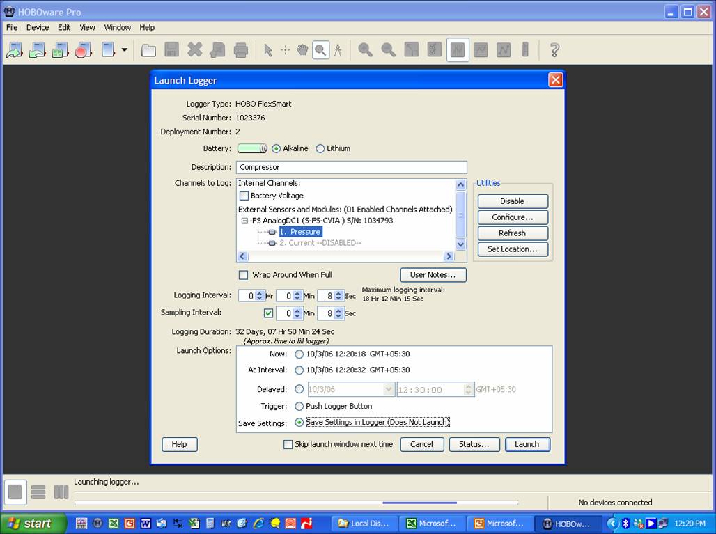 f)“Logging Interval” – 8 secs