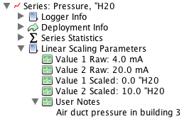在“參數(shù)”面板的“縮放”列中,鍵入縮放系列的單位名稱,并在“縮放”列中輸入縮放值,以與“原始”列中的數(shù)字相對應。 (原始列中的默認值基于傳感器支持的高和低值,但您可以使用不同的值,只要這些值落在傳感器的范圍內(nèi))。這些數(shù)字建立了原始和縮放之間的線性關系值。
