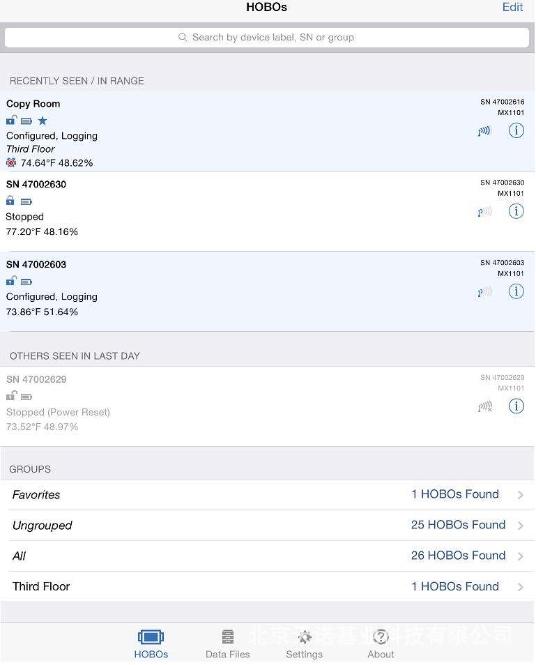 利用Onset為您精心開(kāi)發(fā)的免費(fèi)HOBOmobile APP(可前往AppStore即可輕松下載http://appstore.com/hobomobile),您即可使用您的手機(jī)或平板電腦(如iPad)等移動(dòng)設(shè)備輕松訪問(wèn)30m(實(shí)際使用距離會(huì)受設(shè)備功率和障礙物影響)范圍內(nèi)任何一個(gè)MX1101無(wú)線溫濕度記錄儀。并對(duì)其進(jìn)行設(shè)置,也能夠以圖形方式顯示數(shù)據(jù),還可以選擇將您的測(cè)量數(shù)據(jù)存儲(chǔ)到云服務(wù)器。使用的Onset的自由hobomobile應(yīng)用程序,你可以在圖表視圖數(shù)據(jù),檢查記錄儀運(yùn)行狀態(tài),配置警報(bào)通知,并共享數(shù)據(jù)文件。